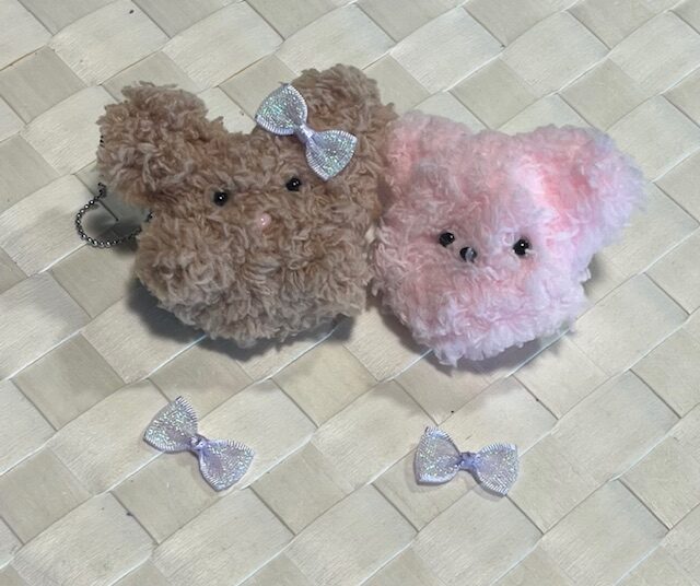 フワフワのモールをクルクルねじったりまげたりしながら、かわいいくまさんをつくります。(お申込み時にモールの色をお選びください。A:ブラウンB:ピンク)