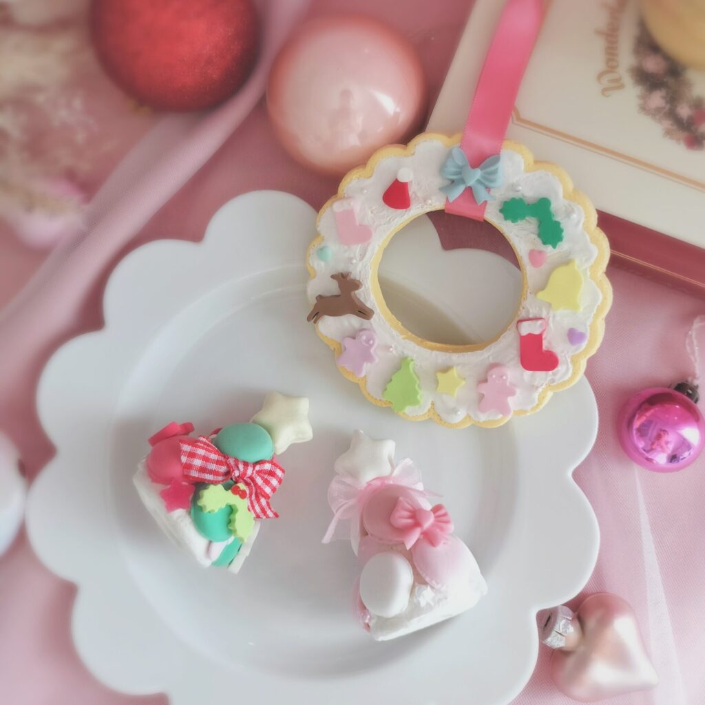 クリスマスツリー風マカロンタワー、リースWS(14日)