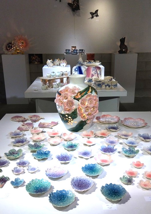 当館では、吹きガラス、陶芸、木工、鉄工、とんぼ玉、粘土オブジェ等さまざまなジャンルの工芸品の展示・販売を行っております。