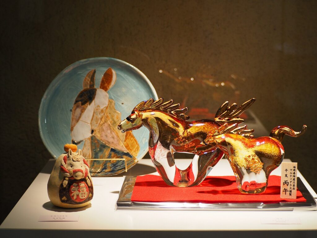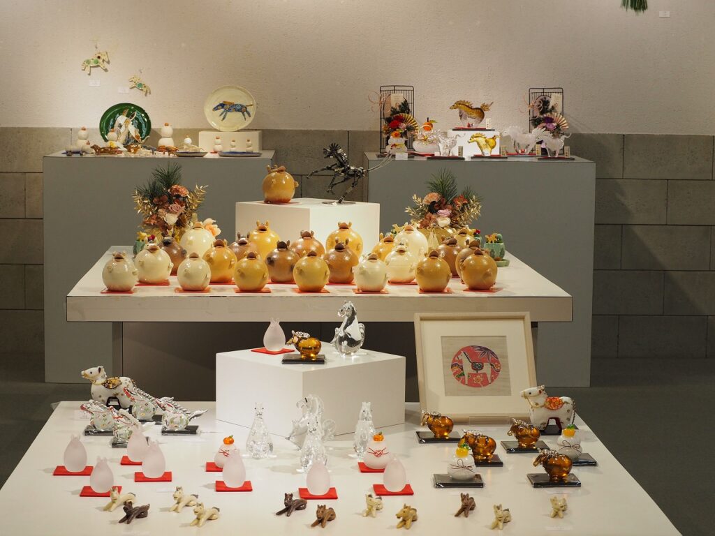2026年の干支『丙午』をモチーフにしたガラス、陶芸、金属、染物等の作品が一堂に並びます。