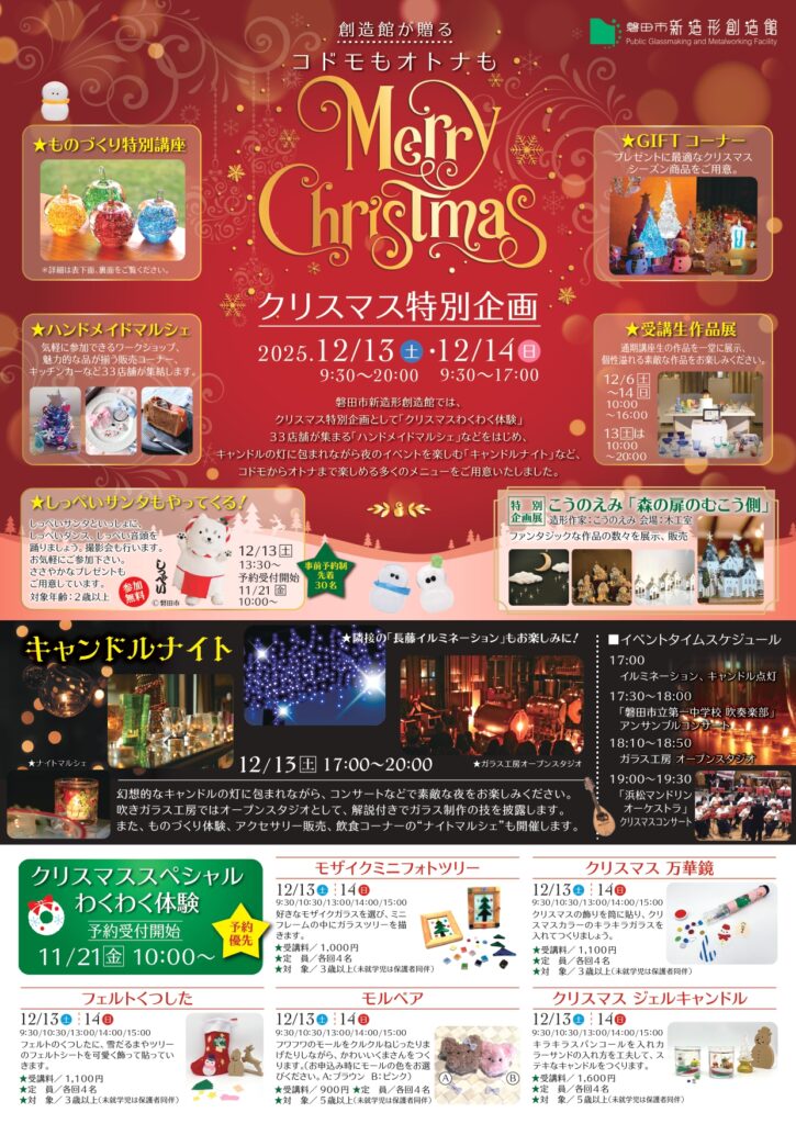12月13日(土)・14日(日)はぜひ創造館にて一足早いクリスマスを楽しんでください♪