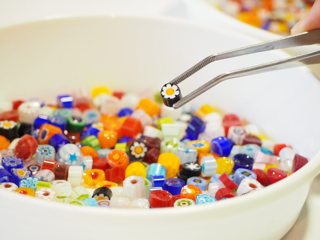 イタリア語で「千の花」という美しいガラスビーズ「ミルフィオリ」を使って、美しく色鮮やかなかわいいアクセサリーを作ります。